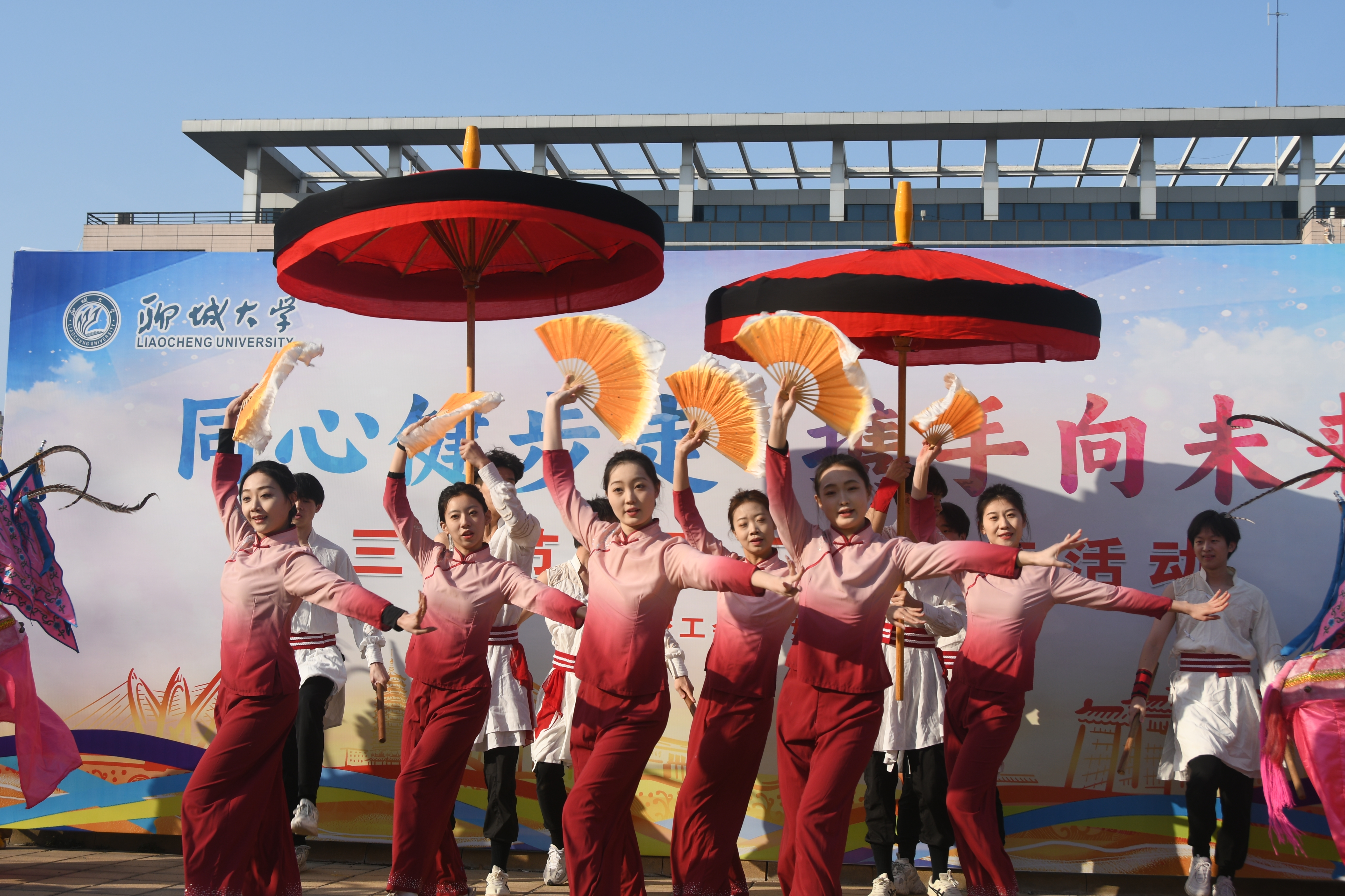 焕发“她活力”。3月6日下午,全校1200多名教职工参加了由太阳集团8722c(妇委会)组织的“同心健步走 携手向未来”教职工健步走活动,共同庆祝第115个“三八”国际妇女节。在由高亢威武的临清驾鼓、飞旋腾挪的运河伞棒和跳脱灵动的道口铺竹马组成的富有非遗民俗色彩的舞蹈《巾帼舞韵》中,活动拉开了序幕。教工们在春光明媚的校园中迈着轻盈的步伐,欢声笑语,相伴携行,在运动中舒展了身心,在并肩前行中增进了友谊,在聊大高质量发展的赛道上蓄满了奋勇拼搏的动力。
