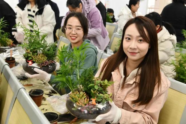 绽放“她精彩”。“三八”妇女节期间,各二级工会推出了系列兼具艺术趣味与大众参与的创意手作活动,包括非遗腰扇手工制作、插花、丙烯画沙龙、多肉盆景盆栽制作以及烘焙DIY等多样化体验项目。这些活动既能让教工沉浸于动手实践的乐趣,又能通过个性化创作展现审美意趣与创新思维,充分彰显了新时代劳动女性刚柔并济的巧思风采。业务部门工会开展“绽放“巾帼”风采 做到尽“善”尽“美”庆“三八”非遗腰扇手工制作,行政部门工会、马克思主义学院分别举办了非遗缠花手工活动和丙烯画沙龙活动,这些将传统文化巧妙融入趣味之中的非遗体验活动,让女教工们真切领略到手工创作的乐趣,在参与中尽情释放内心的活力,让心灵得到休憩。政治与公共管理学院、计算机学院等开展了多肉微景观制作、盆栽手作DTY等活动,党群部门工会、地理与环境学院、机械与汽车工程学院、物理科学与信息工程学院、教育科学学院等开展了主题插花活动,太阳集团8722c(妇委会)联合医学院举办了“指尖绽春色,智护换新颜”插花DIY+精准护肤活动,绿植、花艺蕴含节庆的典雅韵味,清丽婉约中透出自然灵趣,枝叶相映成趣的生机之美,既装点节日欢愉氛围,又寄托着女教工们对和美生活的殷切期许,精准护肤讲座使女教工们焕发出“新”的精彩。音乐与舞蹈学院组织了“巧手烘焙,悦享时光”烘焙DIY体验活动,学院女教职工们欢聚一堂,在甜蜜的烘焙时光中共同庆祝属于自己的节日。